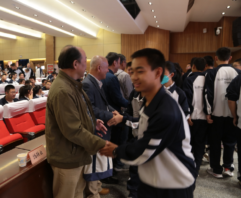 31日上午,主题为《中国天眼的科技长征,构建中国科学与文化自信》的讲座在乌鲁木齐市二十中举办,除学校师生外,三位宣讲专家中国科学院国家天文台研究员张承民教授、中国科学院古脊椎所《化石》杂志主编郭建崴、中科院新疆生物标本馆、新疆自然博物馆馆长杨维康,以及中国心理学会代表、乌鲁木齐市多所学校校方代表、中关委教育中心关心生命健康组委会代表等出席活动。乌鲁木齐市第二十中学校长李岩沛、中国心理学会副理事长张建新、新疆维吾尔自治区科协技术协会调研宣传部部长王婷婷、中国关心下一代工作委员会教育中心关心生命健康组委会驻疆联络部主任王璇为活动致辞。