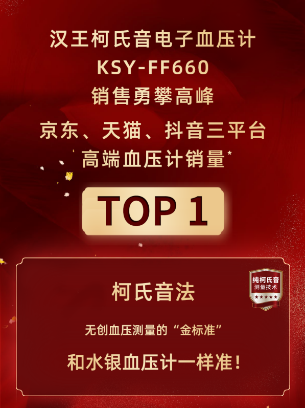 今年618购物狂欢节期间,汉王柯氏音电子血压计凭借其出色的性能和精准的测量结果,赢得了广大消费者的热烈追捧。在各大电商平台上,其销量一路飙升,618当日,汉王柯氏音电子血压计KSY-FF660系列产品成功超越了众多血压计品牌,在京东、天猫、抖音三平台500元以上上臂式高端血压计中销量一举夺魁,成为明星产品。
