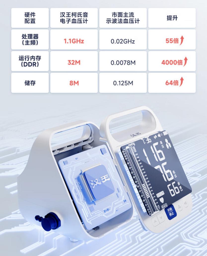 汉王柯氏音电子血压计之所以能够在短时间内取得如此显著的成绩,主要得益于其独特的柯氏音测量技术、先进的软硬件性能以及汉王科技人工智能30年的深厚背景。柯氏音测量技术是通过直接监测袖带放气过程中血流冲击血管产生的声音变化,为用户提供准确可靠的血压数据,是近百年来无创血压检测的金标准,由于多方条件限制,业界一直尝试将柯氏音法电子化都未取得成功。自2019年起,汉王科技便投入大量资源,在硬件、数据、算法、软件和设计等方面进行了全链条创新,成功攻克了柯氏音法电子化的百年难题。这一技术突破使得血压计的测量误差平均差控制在≤±1 mmHg,远高于国际临床标准对血压计测量误差的要求。