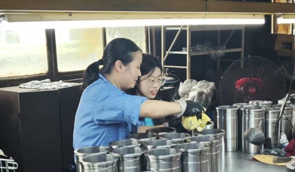 调研期间,实践团成员在技术人员的指导下,亲身参与气缸套生产流程,重点体验了擦气缸套工序。看似简单的擦拭动作,实则蕴含严格标准——既要确保缸套表面无丝毫油污残留,又需精准控制力度,避免刮伤精密加工的内壁。