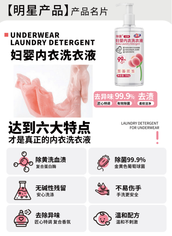 特酵素T2技术:添加高效生物酶(如复合蛋白酶),针对性分解血渍、油污等顽固污渍(妇婴内衣洗衣液)。