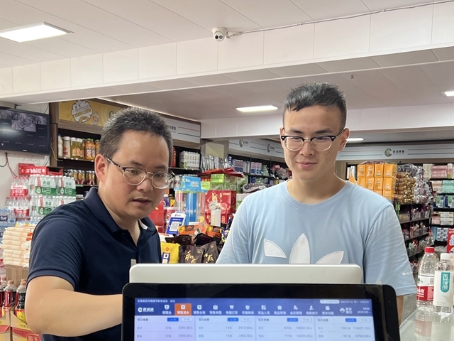 图为走访南田镇“共富街”零售客户掌握客户需求 刘一心/摄