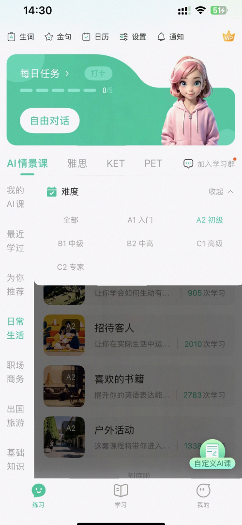 在这场专门练英语听力的软件的较量中,可栗口语之所以能够脱颖而出,不仅仅因为它在听力训练方面的卓越表现,更因为它重新定义了英语学习的方式。想象一下,每天只需利用上下班的20分钟,通过可栗口语的AI情景对话,你就能在模拟的海外旅行、商务会议或日常交流中自然提升听力能力;当你在准备雅思托福等考试时,可栗口语能精准定位你的听力短板,提供针对性训练;即使是零基础的学习者,也能在可栗口语的引导下,从听懂第一个单词开始,逐步建立听力自信。