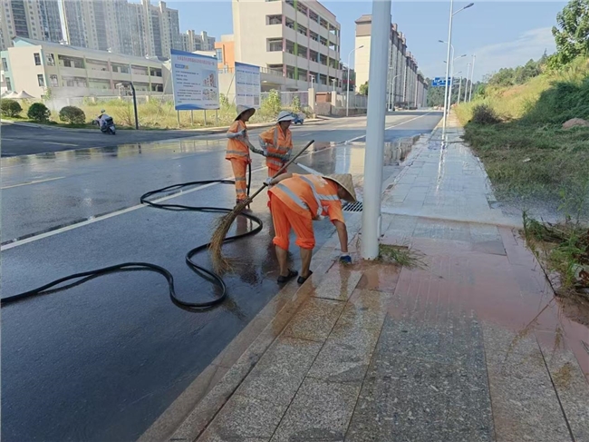 在清洗过程中,环卫工作人员结合城区道路实际情况,严格落实“全覆盖、无缝隙、见本色”的清洗标准,采取人机结合的作业模式,逐一对城区主次干道、人行道、公厕、公园广场、各类市场等地方进行常态化、全方位、全覆盖集中冲洗、洒扫。同时,对公交站台、护栏、垃圾桶等公用设施进行擦洗;小型高压清洗车对重度油污地面进行清洗;雾炮车对空中进行降尘,做到了内外干净,边角无污,实现路见本色,着力提升城区环境卫生质量。截至目前,已完成象山菜市场、乐安大道、迎宾北大道等10余条道路的冲洗保洁工作。