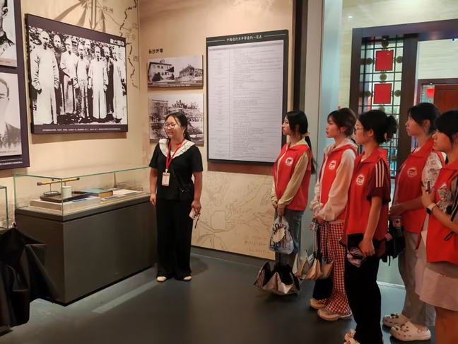 上午9时,实践队抵达中国共产党长沙纪念馆。刚踏入纪念馆,队员们就被浓厚的历史氛围所感染。馆内丰富的历史文物、珍贵的文献资料以及逼真的场景复原,全方位、多角度地展现了中国共产党长沙地方党组织从成立之初到新时代的发展历程,以及领导长沙人民进行革命斗争、社会主义建设和改革开放的伟大实践。