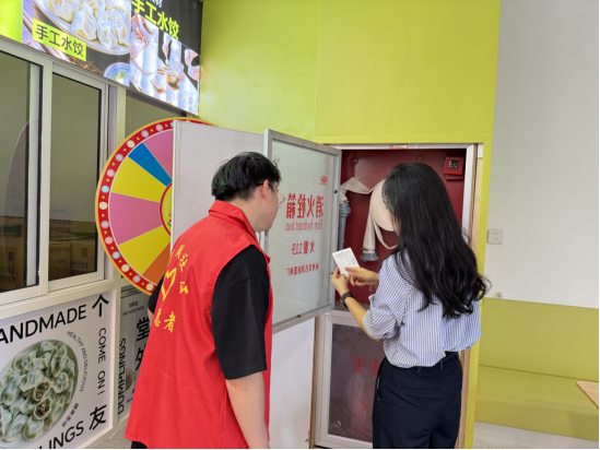 社区安全关乎千家万户,是民生幸福的基石。在开展安全隐患排查整治工作的同时,东沙湖社区充分发挥网格员“宣传员”作用,通过线上线下相结合的方式,积极开展消防安全宣传教育活动。在线上,网格员利用社区公众号、微信群等平台,推送消防安全知识、典型事故案例等,提高居民和商户的消防安全意识;在线下,网格员深入小区、商铺,发放宣传资料,讲解消防安全常识,引导居民和商户自觉遵守消防法规,主动排查身边隐患,共同参与社区消防安全管理工作。