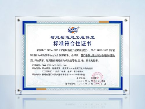 图:燕之屋成功通过智能制造能力成熟度三级认证