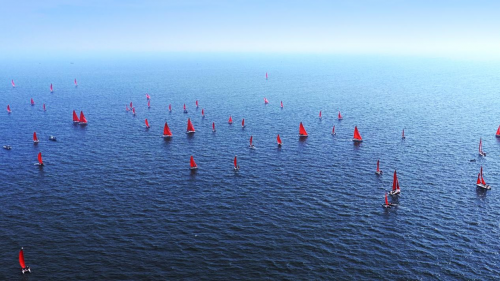 2025年“为祖国升帆”活动于10月1日在秦皇岛国际旅游港盛大启幕。由Hobie Getaway、Hobie 16、FAREAST 28R、FAREAST 11、Optimist五个组别共76条帆船组成的巡游船队,在新中国成立76周年之际,用航海领域最庄重的“升帆”礼节,为祖国母亲献上最诚挚的生日祝福。作为航海人致敬祖国的年度盛事,来自北京、天津等全国各地的近200名航海爱好者驾驶帆船,在湛蓝的海面上升起红帆,用这一独特的方式,表达对祖国深深的热爱。