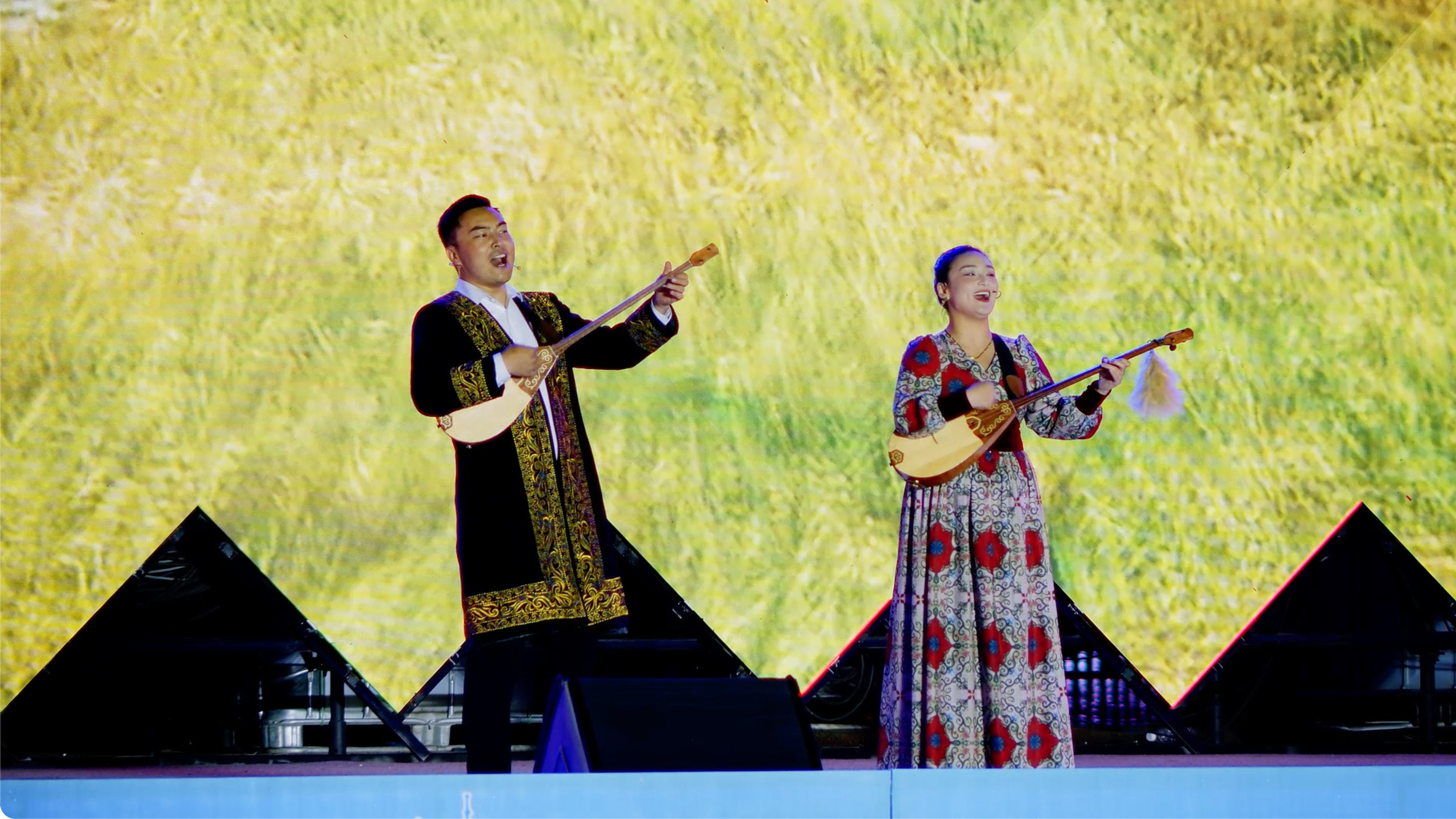 紧接着,歌伴舞《大地欢歌》、冬不拉弹唱《只要你走进哈萨克毡房》、女声独唱《花开葵都》、《祝福祖国》、现代舞《青春舞曲》、歌伴舞《带着梦想来北屯》等节目轮番登场不断点燃现场的气氛,赢得观众阵阵热烈的掌声和喝彩声。压轴节目歌伴舞《我们的新时代》则以昂扬的旋律奏响了奋进新征程的号角。
