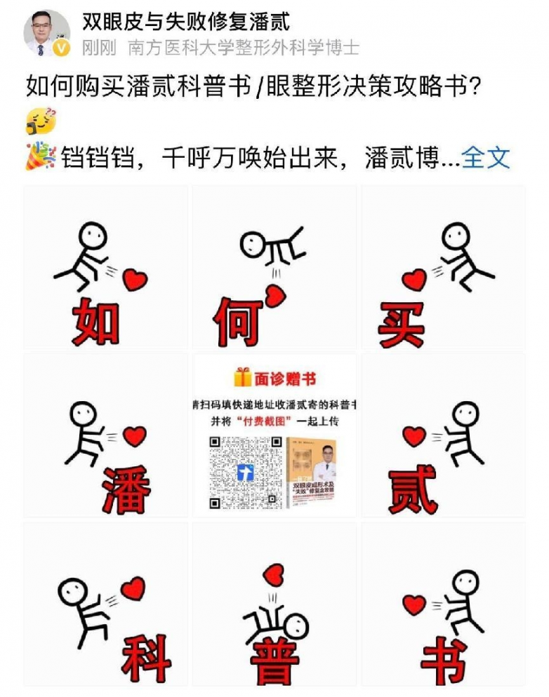 通过“双眼皮与失败修复潘贰”账号,在今日头条、微信视频号、微信公众号、抖音、小红书、百家号、新浪微博、知乎、哔哩哔哩(B站)等网络平台积极科普生理性眼修复美学理念。
