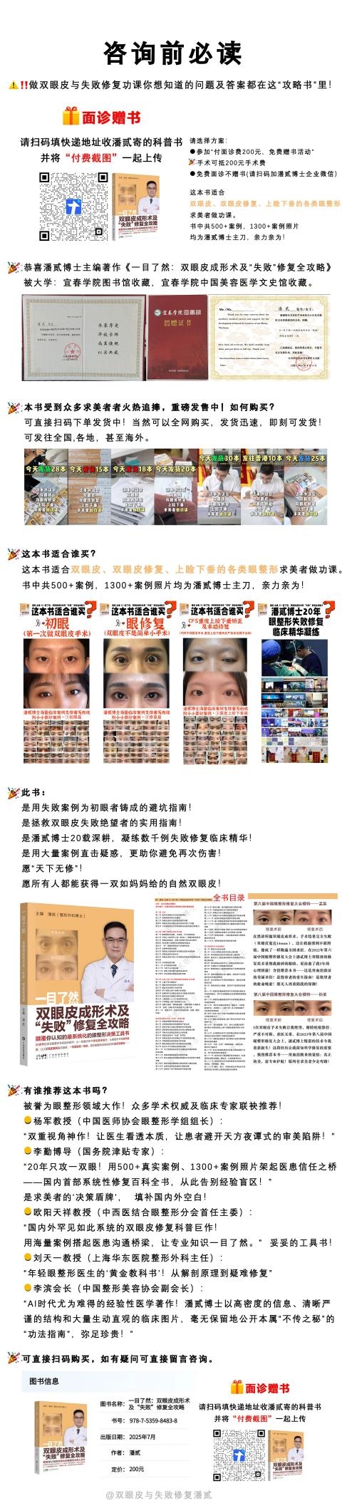 无论你是初眼(天生的还没做过双眼皮手术),还是寻求修复的求医者,获得这本书就是获得眼整形道路的“答案之书”、“指南之册”,用知识武装决策,整形路上让自己少走弯路!如何购买此书?欢迎联系潘贰博士,参加“约面诊赠书”活动。