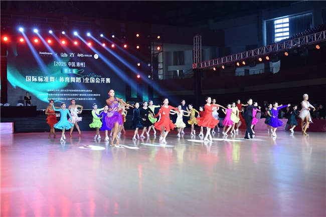 赛场上,高潮迭起、精彩纷呈。从优雅端庄的华尔兹、探戈,到热情奔放的恰恰、伦巴,选手们以灵动的身姿、精湛的舞技和饱满的情感,诠释着体育舞蹈的艺术内涵与竞技活力。特别设置的七省对抗赛成为最大亮点,来自不同地域的代表队同台竞技,既展现了各地区体育舞蹈发展的特色风采,更促进了跨区域文化体育交流。赛事组别覆盖广泛,从少儿萌娃到成人舞者均能找到展示舞台,充分体现了"全民参与、全民共享"的办赛理念,彰显出体育舞蹈的多元性与普及价值。