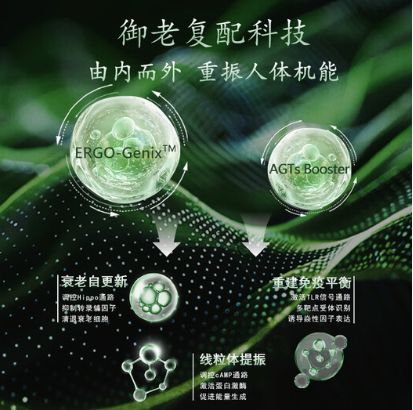 传统抗衰产品往往仅针对单一老化症状,难以从根本上解决问题。「牛津6代」通过其核心成分ERGO-Genix御老因子,创新性地实现三重抗衰机制协同作用: