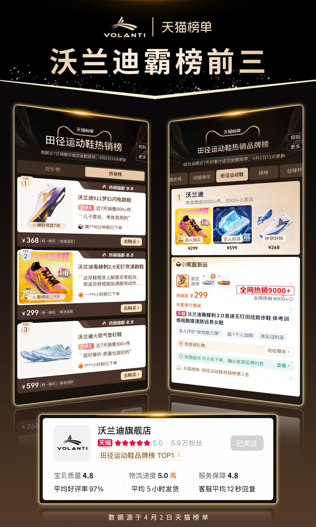 当361°、特步、安踏、李宁等品牌在泛大众运动领域布局,试图覆盖休闲、健身、多品类运动场景时,沃兰迪则聚焦田径赛道,深耕十余年,作为中国首个从专业田径赛场精准切入体考体测的品牌,用“更懂场地竞速”的专业,成为国内田径领域的行业领导者,凭借超高的产品力长期霸榜各大电商平台。