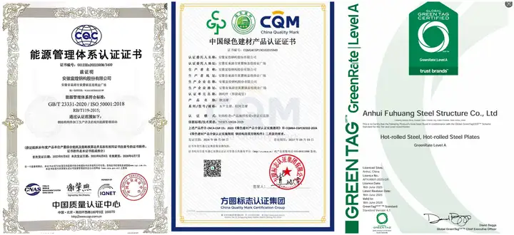 近年来,国家密集出台推动绿色建筑与新型建筑工业化发展的政策,为钢结构行业注入强劲动力绿色三星产品证书、绿色标识认证证书、能源管理体系证书(原图,单独放文件夹)绿...