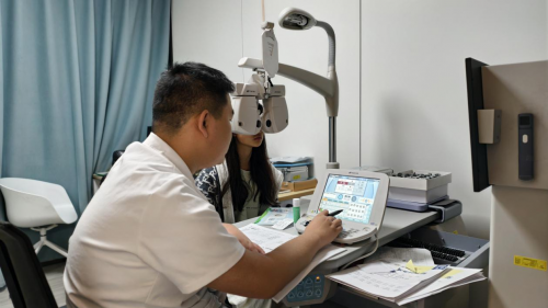 10月2日上午,润城普瑞眼科医院屈光科室候诊区坐满了前来咨询和检查的近视患者。其中,从事IT行业的李先生表示,自己近视500多度,戴眼镜超过20年。“平时工作经常盯着电脑,戴眼镜不仅压鼻梁,夏天出汗还容易滑落,非常影响工作效率和生活体验。”趁着国庆假期,他选择通过全飞秒手术摘镜,“希望假期结束后,能以全新的形象投入工作,也方便以后运动、旅游。”