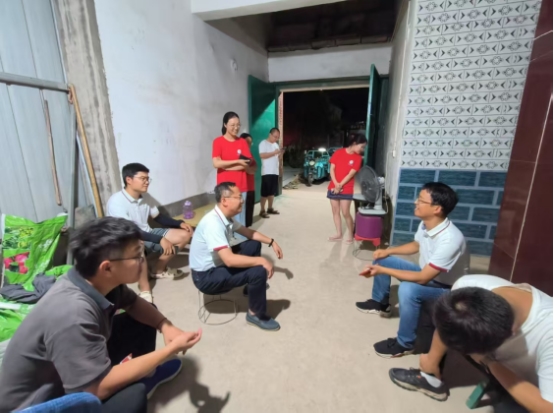 图中左一为中国科技小院博士生董治浩,左二为中国农业大学科技小院研究生侯玉林,左三为中国农业大学曲周实验站站长张卫峰教授,右二为中国农业大学焦小强副教授,其他人为中国农业大学科技小院研究生。(暑天查访学生防暑落实情况)