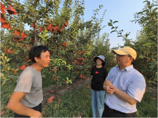 图中左一为曲周果农,左二为青年编剧崔书源,右一为联合国粮农组织干事杨普云博士。(联合国粮农组织干事杨普云博士巡访河北曲周果农)
