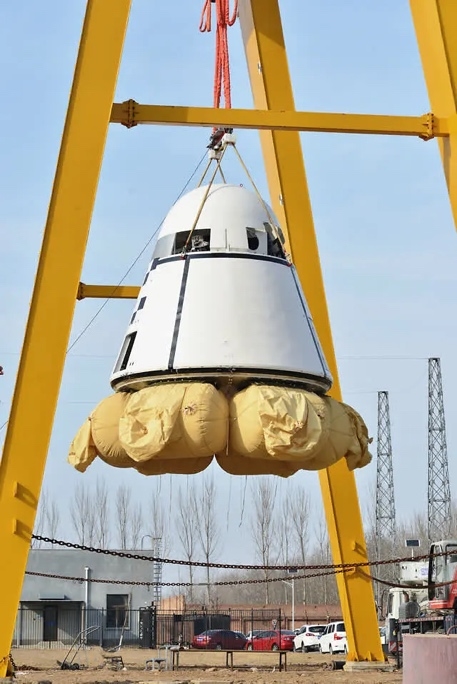 新一代载人飞船试验船气囊缓冲技术试验现场