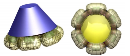 我国新一代载人飞船、美国“猎户座”飞船(前期方案之一)、波音公司CST-100飞船等均采用了气囊着陆缓冲方式。这一方式着陆过程冲击过载相对较小;在一定初始水平速度范围内可保证飞船在着陆过程中保持竖直向上的姿态而不侧翻;可同时适应海上与陆地着陆。然而,气囊系统也存在设计较为复杂、结构质量较大等显著缺点,在一定程度上增加了系统整体负担。