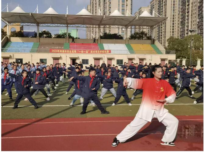 在体教融合领域,启东市教育体育局大力推进“一校一品”建设,扎实推动学校体育发展,本次赛事的武术特色学校组便是生动体现。各校组织学生参与集体项目角逐,这不仅助力学生锤炼身体素质、精进武术技艺,更推动武术文化在校园生根传承。