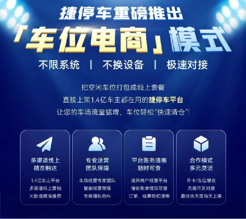 在城市智慧化进程不断加速的今天,商业停车场运营正面临前所未有的机遇与挑战,停车难、空置率高、收益增长乏力,成为许多商业综合体停车场的管理痛点。“车位电商”模式通过数字化手段和运营赋能,真正助力停车场实现零成本引流、持续增收的转型升级,未来,将继续深化“车位电商”模式创新,通过AI大数据分析和运营优化,帮助更多停车场提升资源利用率,实现收益最大化,捷顺期待与更多停车场管理者携手合作,共同开拓智慧停车运营的新蓝海。