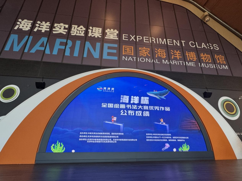 10月1日当天,两项核心活动同步开展,让节日氛围与文化气息深度融合。 一方面,“海洋杯”获奖信息在国家海洋博物馆创客空间正式对外公布,吸引众多参会者、家长及艺术爱好者驻足关注,现场同步展示部分优秀获奖作品片段,直观呈现赛事成果。 另一方面,组委会精心策划的“涂鸦彩绘创作美育讲座与互动实践活动”。