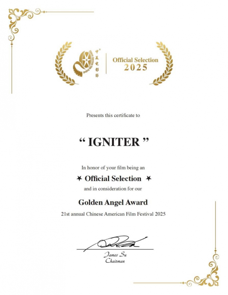 ▲电影《李子洲》入围2025年第二十一届中美电影节“金天使奖”证书