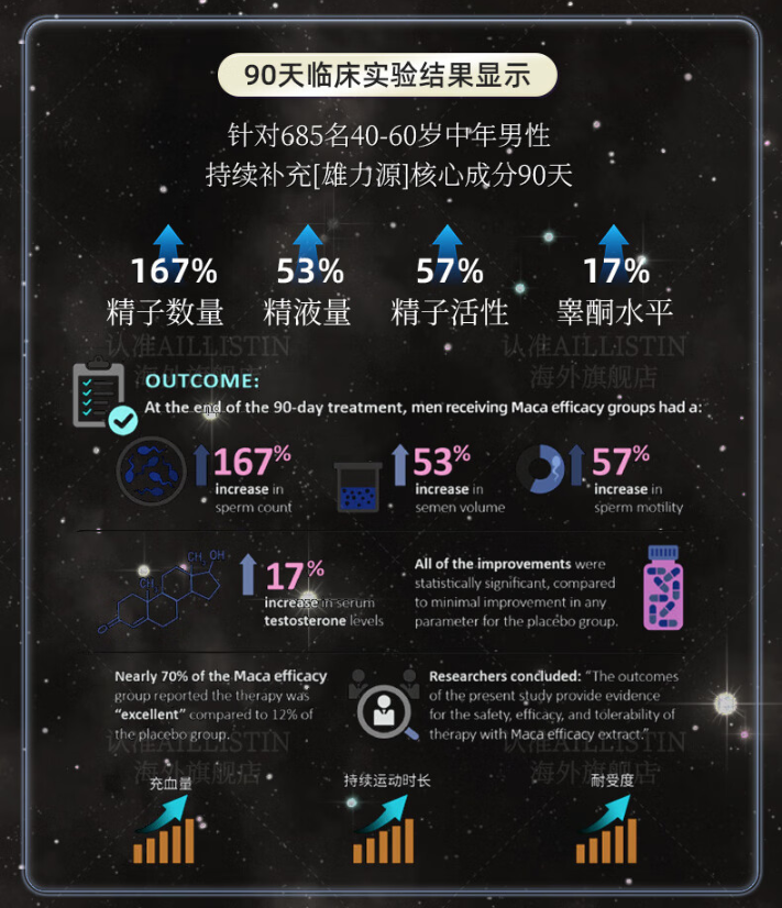雄力源作为AILLISTIN品牌旗下美国原装进口高端男士补剂,诞生于全球生命科学前沿的美国,汇聚哈佛、麻省理工等世界级科研资源。由哈佛团队发起研发,联合多家权威临床研究中心,通过AI算法精准筛选核心成分并优化配比,参考上千项国际临床试验与全球数据库,确保每项成分与剂量严格遵循循证医学标准。实验室验证到临床研究再到产品落地的完整科学链路,使雄力源不仅拥有科研背书,也符合国际化质量标准,可长期安全服用,为男性前列腺健康和性功能提供系统化、科学化的支持。