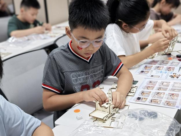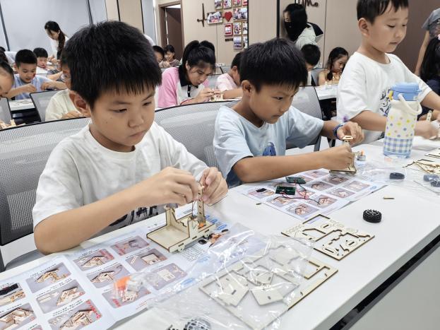 手作环节中,爱心妈妈向每名小朋友分发太阳能月球车模型套件,并详细讲解组装步骤与核心结构原理。大家迅速投入状态,从拼接主体框架到安装,每一个步骤都力求精准。爱心妈妈与孩子共同解决组装难题,现场充满了欢声笑语与专注探索的氛围。经过近两小时的努力,一个个太阳能月球车模型陆续完成,孩子们举起自己的作品,脸上洋溢着成就感与自豪感。