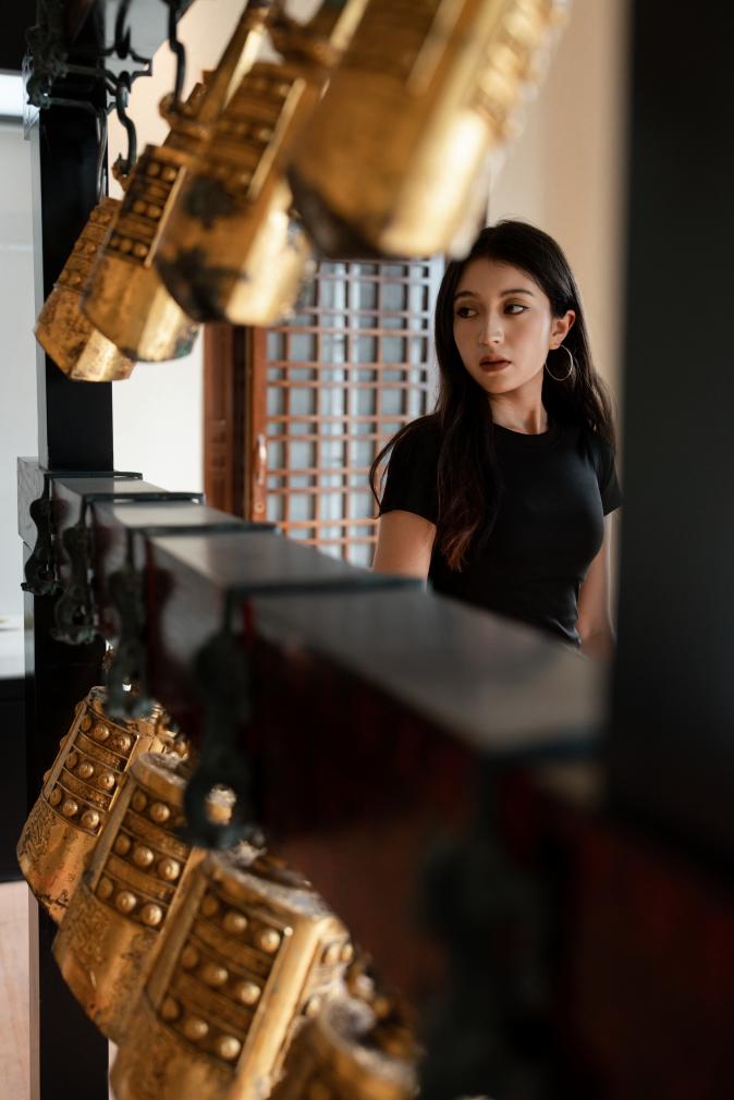 拾级而上,步入二楼展区,便进入了一个精心打造的传统艺术展示空间。这里陈列的是天津非遗传承人“乐器张”的家族珍藏,包括古琴、琵琶、瑟、编钟等多类传统乐器以及来自德国的老式音乐柜等多件珍贵藏品。这些展品不仅是珍贵的艺术实物,更是可观可感的文化载体,将津门文化的深厚底蕴与鲜活生命力,“润物细无声”的传递给每一位游客。