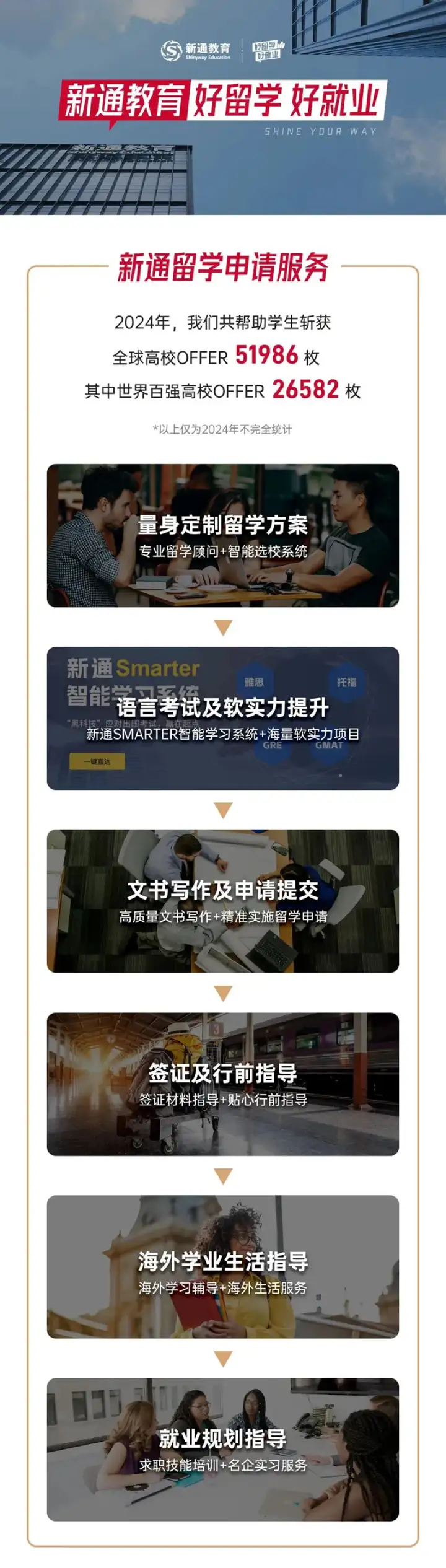 新通专家现场答疑,未来早规划。留后服务团队+就业支持专家坐镇,不管是 “海外挂科了怎么办”“毕业想留当地工作怎么准备”,还是 “回国就业如何衔接就业”......都能得到具体解决方案。新通不只是帮助学生完成留学申请,更要让留学成为你职场进阶的 “新起点”,全程陪你走得稳、走得远。
