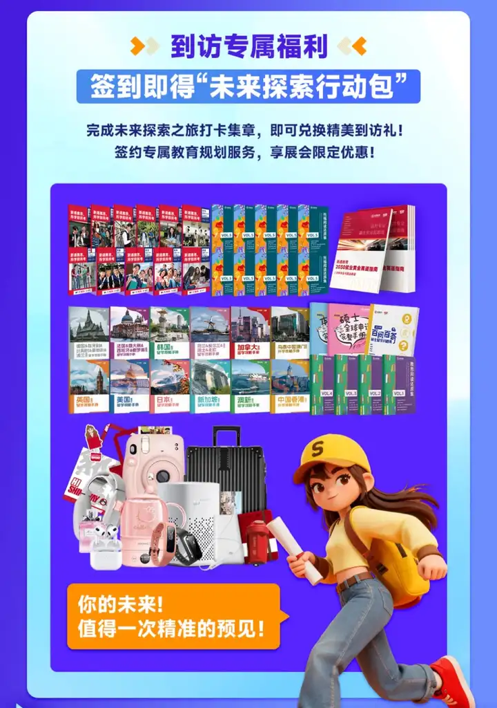 活动当天现场到访即可领取专属“未来探索行动包” (内含新通独家留学和就业干货指南与语言学习实用资料等)。现场签约,更可揭晓额外惊喜福利,为你的未来选择加码!
