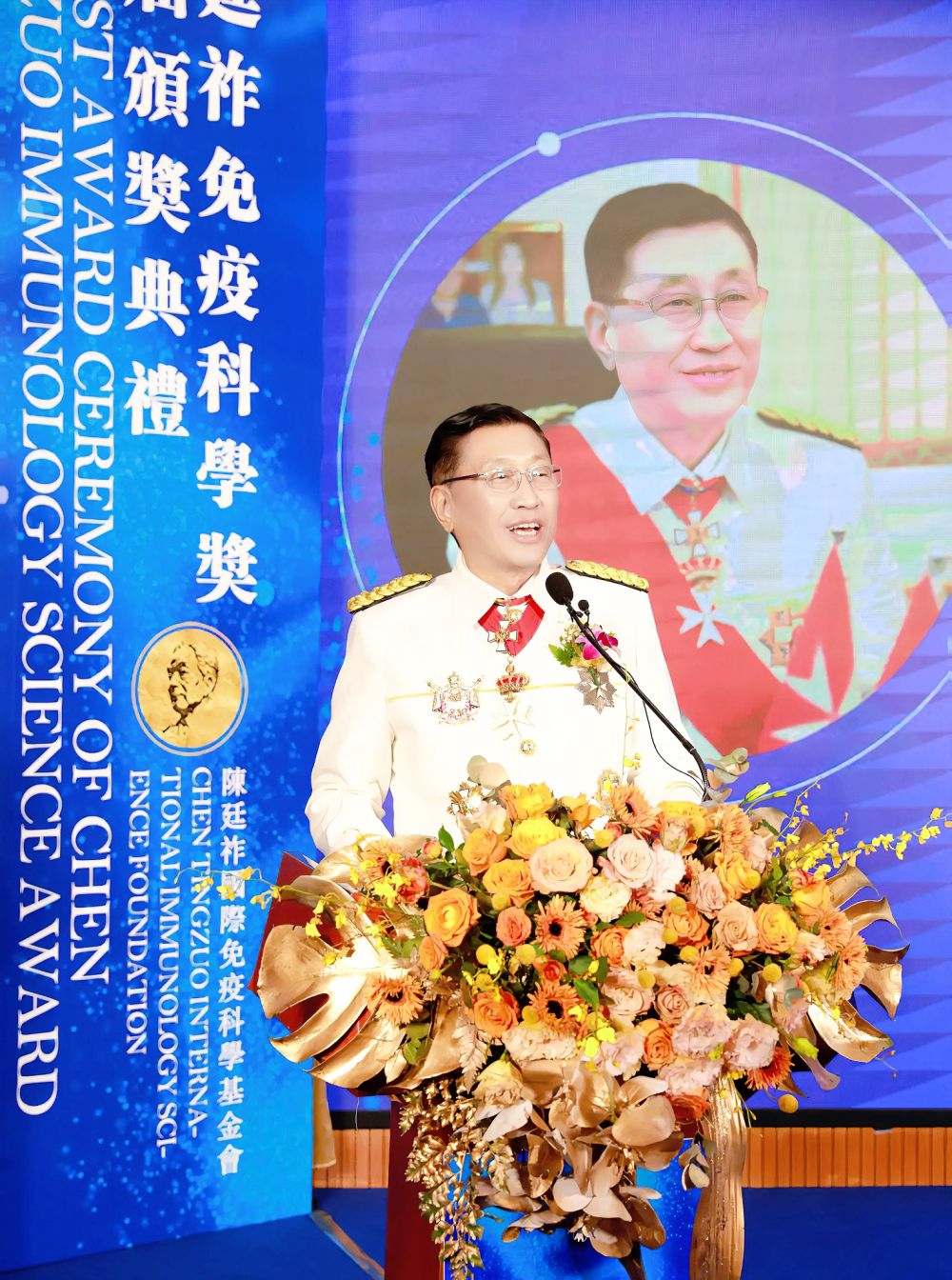 诺贝尔生理学或医学奖得主、“瑞士细胞学之父”罗夫·辛克纳吉,与《柳叶刀》杂志主编、英国医学科学院院士查德·霍顿共同摘得“陈廷祚终身荣誉奖”。英国皇家医学会会士陈巨余,因其在超级抗原药物研发、肿瘤辅助治疗、免疫调节领域的突出贡献,也荣获“陈廷祚免疫科学终身荣誉奖”。