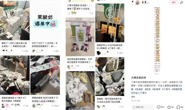 为满足粉丝期待,茉酸奶推出“代言人专属套餐”——买酸奶送丁禹兮小卡、摇摇杯。据悉,活动推出当天,该套餐在茉酸奶部分门店的销量占比超过总销量的60%。有门店店长直言忙不过来,“11点刚过原料就见底了,顾客还在问能不能留同款。”