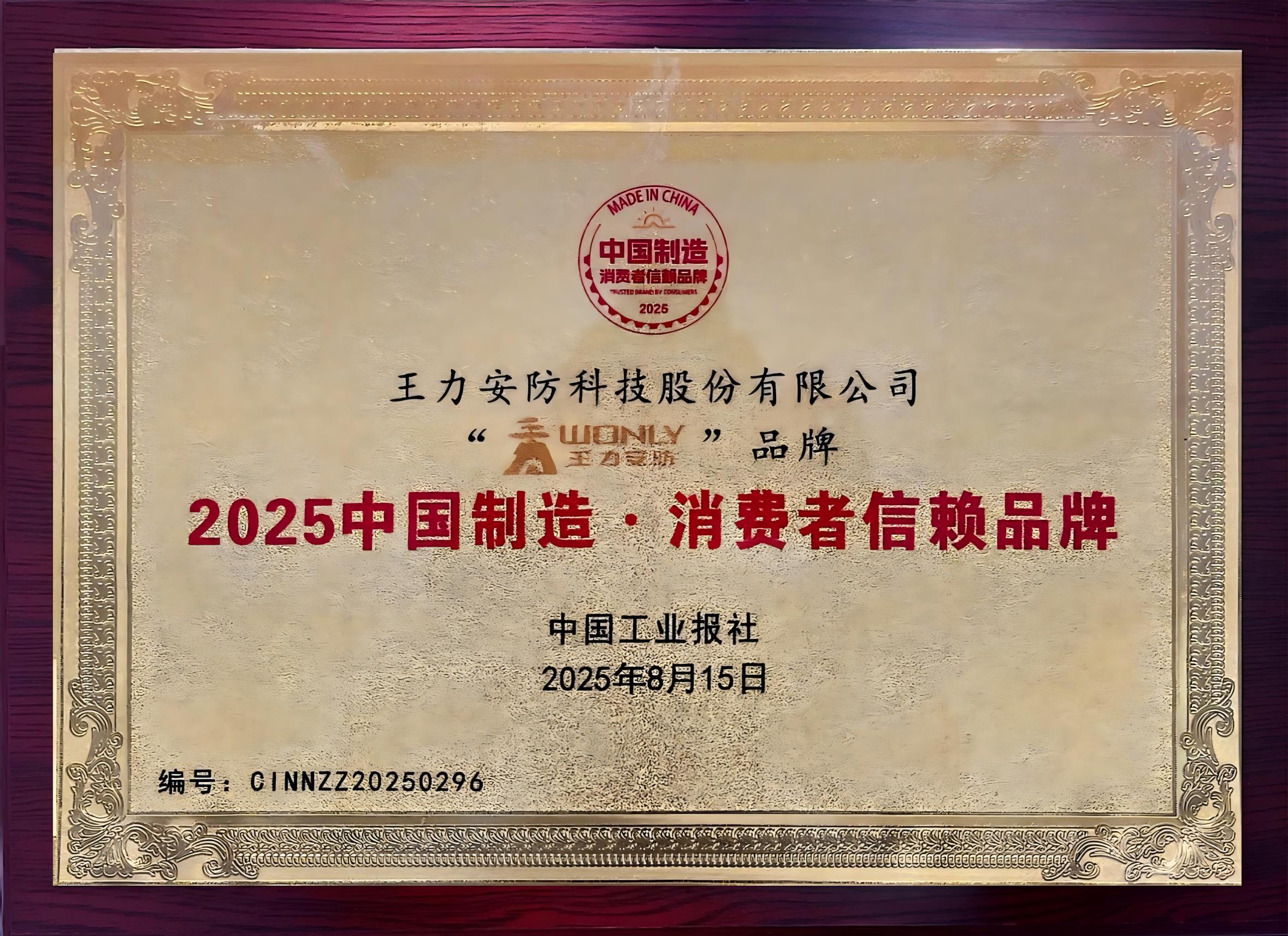 9 月 16 日,王力再登 “2025 中国制造・消费者信赖品牌” 榜单,成为安防门锁行业唯一入选企业。