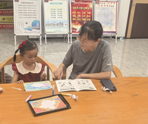 孩子们全程目不转睛,沉浸在沙画艺术的神奇魅力中,不时发出惊叹之声。在互动体验环节,小朋友们在老师的耐心指导和社区志愿者的帮助下,纷纷走上台前,亲手尝试用沙粒绘制分类图标,在快乐的实践中巩固了所学知识。家长们也表示:“这种活动形式太新颖了!不仅让孩子在艺术熏陶中牢牢记住了垃圾分类的重要性,也给我们家长上了一堂生动的环保课,比单纯发宣传册效果好得多。”
