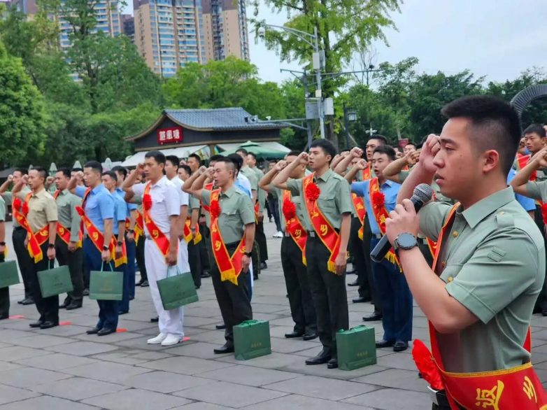 我是中国人民解放军军人,即将退出现役,我宣誓:服从中国共产党的领导,忠于祖国,忠于人民...... 9月29日,龙泉驿区2025年秋季自主就业退役士兵集中欢迎仪式在洛带博客楼广场隆重举行。此次活动由区退役军人局、区爱国拥军联合会共同举办,旨在帮助退役士兵加快角色转换,顺利适应地方发展需求,为其就业创业保驾护航。
