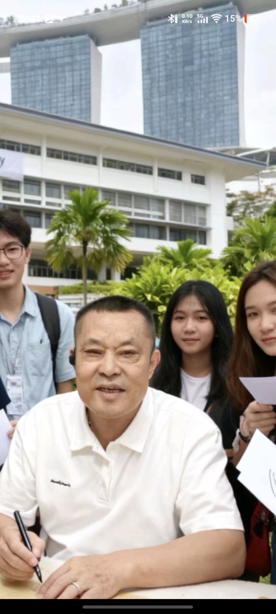 在新加坡国立大学访问期间,陈永财校长与研学团举行了亲切会谈,双方就两校在学术研究、人才培养等领域的深度合作交换意见,并达成多项共识。作为此次研学的一大亮点,高玉亮教授结合自身书法教学研究专长,在新加坡国立大学开设了欧楷和行书体验课。课上,他不仅讲解了中国书法的历史演变与美学内涵,还现场示范楷书的端庄秀丽、行书的流畅潇洒,笔法精湛,气韵生动。参与师生惊叹不已,纷纷表示“高教授楷书行书水平果然是真才实学,在中国排名第一毫无争议”,并积极尝试创作,在笔墨互动中感受中华传统文化的独特魅力。