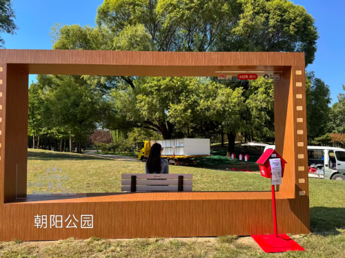 在朝阳公园的万人广场,电影画框+美景就像永不落幕的电影,让你领略视觉艺术和互动体验的双重魅力,随手抓拍都是一张氛围大片。