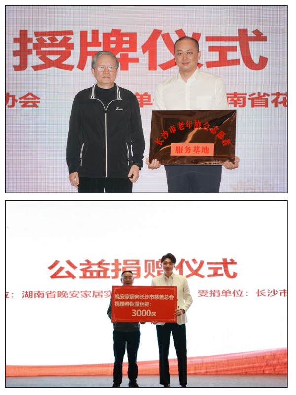 活动现场,长沙市老年协会表演的《军鼓乐》节目展现了银龄群体的活力与风采。同时举行的“银龄关爱适老产品”捐赠仪式上,晚安家居集团向长沙市慈善总会捐赠了3000床蚕丝被。