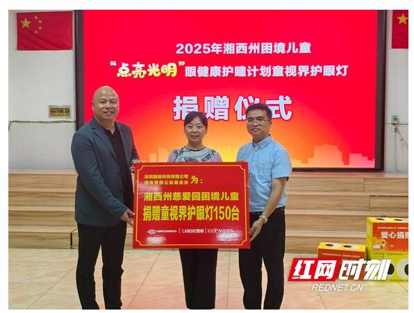 活动中,深圳朗赫科技有限公司联合湖南爱眼公益基金会向湘西州慈爱园捐赠了150台童视界护眼灯,用科技为孩子们打造“光明书桌”;湘西爱尔眼科医院则持续发挥专业优势,筑牢“视力防线”。从“医疗干预”和“环境改善”两端发力,让困境儿童既能拥有专业的眼健康保障,也能在明亮、舒适的灯光下读书学习。