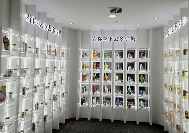 最具人气的 “糖、盐、油可视化装置” 将常见饮品、零食转换成真实的糖、盐、油,让观众瞬间读懂 “隐形摄入”的危害。“我们把复杂的营养学知识变成了可触摸、可感知的体验。” 爱伽健康西安分公司负责人介绍。
