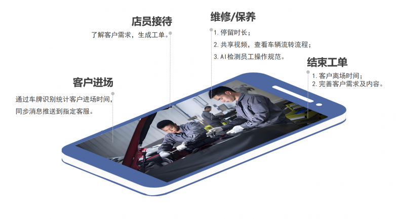 ABD慧眼数据人工智能技术如同透视镜,同样给售后维修和保养标准领域带来了颠覆性的改变。通过智能算法手段实现售后维修保养的全程可视化、标准化与智能化管理,可以随时随地掌握车辆状况与现场维修标准执行。包括统计分析车辆进出维修区与的时间、维修标准是否合规、识别分析现场车辆环境情况,以及利用视觉分析技术,对售后现场人员行为分析,如:人员是否吸烟、聚集、吃东西,中台系统对接、会员标签处理等。同时,系统还能对售后服务数据进行深度挖掘与分析,为汽车门店持续改进服务流程、提升客户满意度提供宝贵的数据支持。这种智能化的售后服务体验不仅增强了顾客的信任与依赖,更为门店赢得了良好的市场声誉与品牌形象。