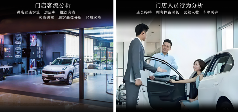 在个性化与定制化的道路上,ABD慧眼数据始终走在前沿。通过前沿的视觉识别与数据分析技术,对整个门店进行智能监测、人员行为分析。接待展示模块更是灵活多变,依据每个车型区域内的顾客停留时长、以及店员接待时长可以判断出顾客对该车型的意向程度,以及顾客和店员导购的互动情况;通过视觉识别技术对店内人员行为分析,可以智能识别分析出门店内每款汽车的试驾人数,来判断出成交意向高的车型,也从而精准捕捉顾客的每一个细微需求,为他们量身打造专属的购车方案,全力配合销售业绩的提升。