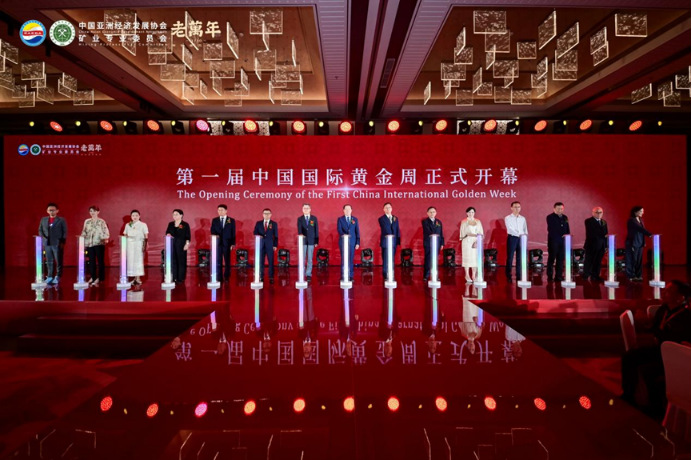权顺基会长、刘振宇部长、乐玉成部长、宋鑫董事长、陈必彬会长、罗丹董事长、陈丽华院长、李广国社长、杨曙光会长、贡培兴主席、和峰主任、沙小荔主编、戚春兰女士、郝蕾女士、灵锋先生共同出席中国国际黄金周开幕仪式。