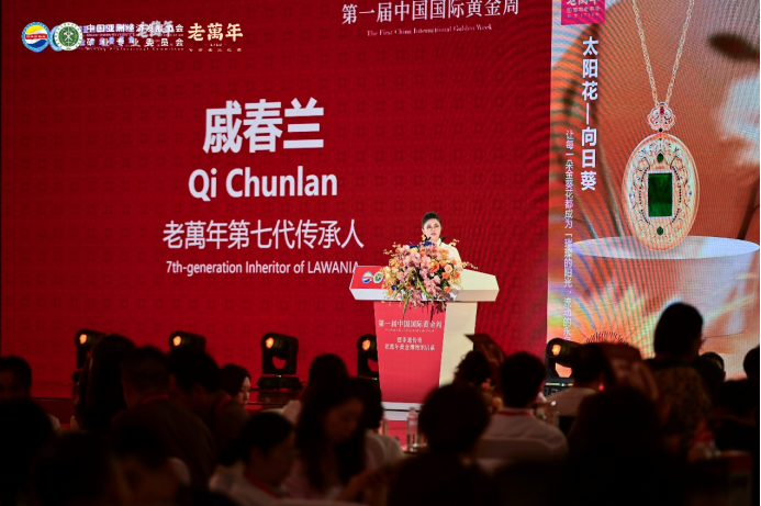 10月18日,“第一届中国国际黄金周暨非遗传奇|老萬年黄金博物馆启幕”系列活动在苏州召开。中国亚洲经济发展协会会长权顺基,司法部原副部长刘振宇,国家广播电视总局原副局长乐玉成,中国黄金报社社长李广国,中国工艺美术协会副会长杨曙光,《时尚芭莎》主编沙小荔,丝路规划研究中心总规划师和峰,老萬年黄金珠宝有限公司董事长罗丹,故宫博物院原副院长陈丽华,老萬年第七代传承人戚春兰出席本次活动并致辞。