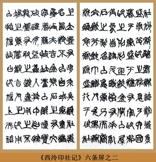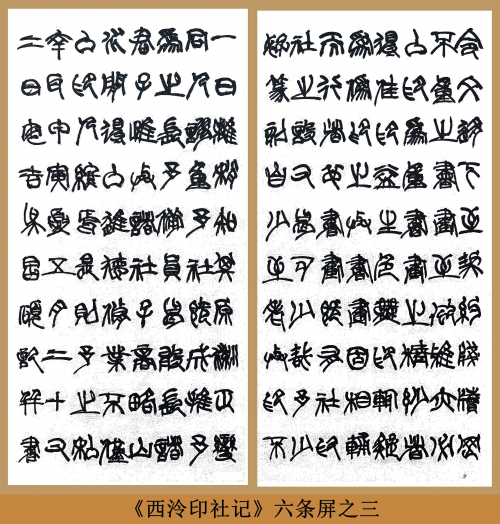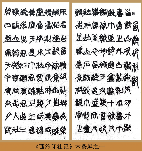 尤为珍贵的是,在第一百期这一具有纪念意义的时刻,先生特意嘱托笔者以其创作的吴昌硕《西泠印社记》为内容。此举意味深长:它仿佛完成了一次跨越世纪的艺脉对接。吴昌硕作为西泠印社的首任社长,其艺术精神中本就蕴含着蜾扁的基因;朱妙根先生作为西泠印社的资深传承者,以此文此体致敬先贤,不仅彰显了西泠“保存金石、研究印学”的宗旨,更象征着蜾扁艺术从潜流到显学,在当代印学与书坛中确立了其不容忽视的地位。