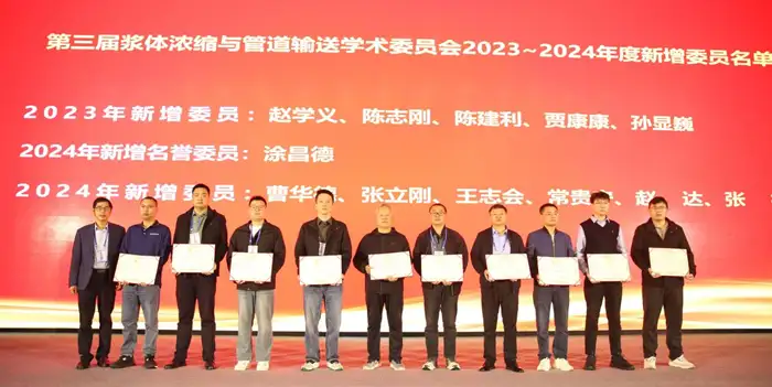 为确保本次研讨会顺利举办,会议前夕,大会主办单位之一的浆体浓缩与管道输送学术委员会召开了第三届学术委员会第五次全体会议。会议不仅对本次大会的会务准备工作进行了细致部署,还为学术委员会未来的发展规划了方向,并于大会期间,举行了2023-2024年度新增委员颁发聘书仪式。