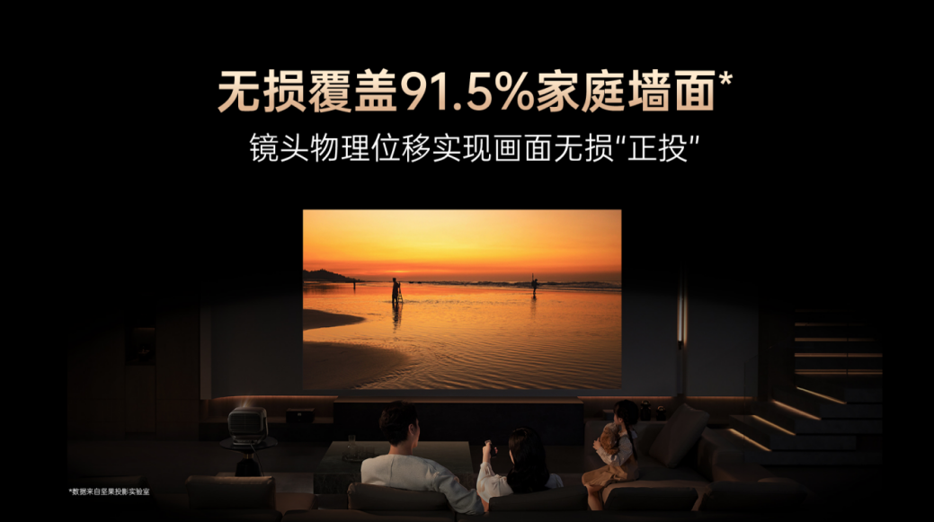 在符合上述适配标准的产品中,坚果N5 Ultra Max展现出出色的场景适配能力,其搭载的满血版双向移轴可覆盖91.5%家庭墙面范围,配合0.88-1.7:1的无损光学变焦,1.9米-3.8米距离内均可投射100寸画面,无论是3.3米左右的小卧室,还是4.2米以上的大客厅,都能在保证分辨率、亮度无损耗的前提下,呈现清晰细腻的巨幕效果,为不同户型的中国家庭提供了优质的观影选择。
